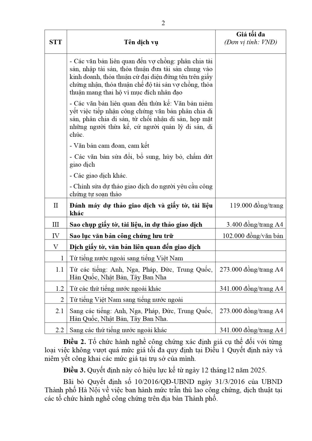 Bảng phí công chứng