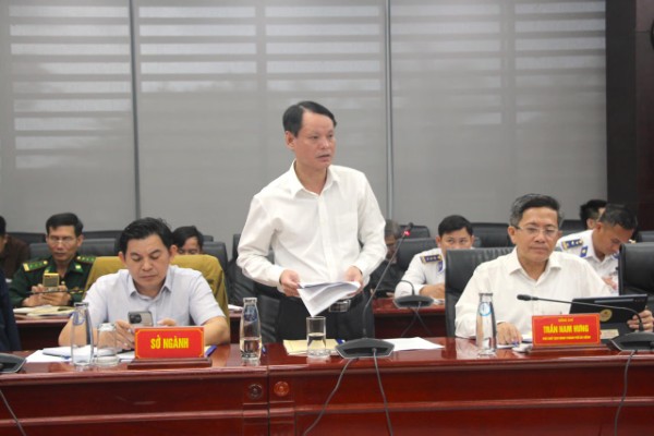 Đại tá Phan Văn Thí, Phó Chỉ huy trưởng Bộ đội Biên phòng TP Đà Nẵng báo cáo tại buổi làm việc.